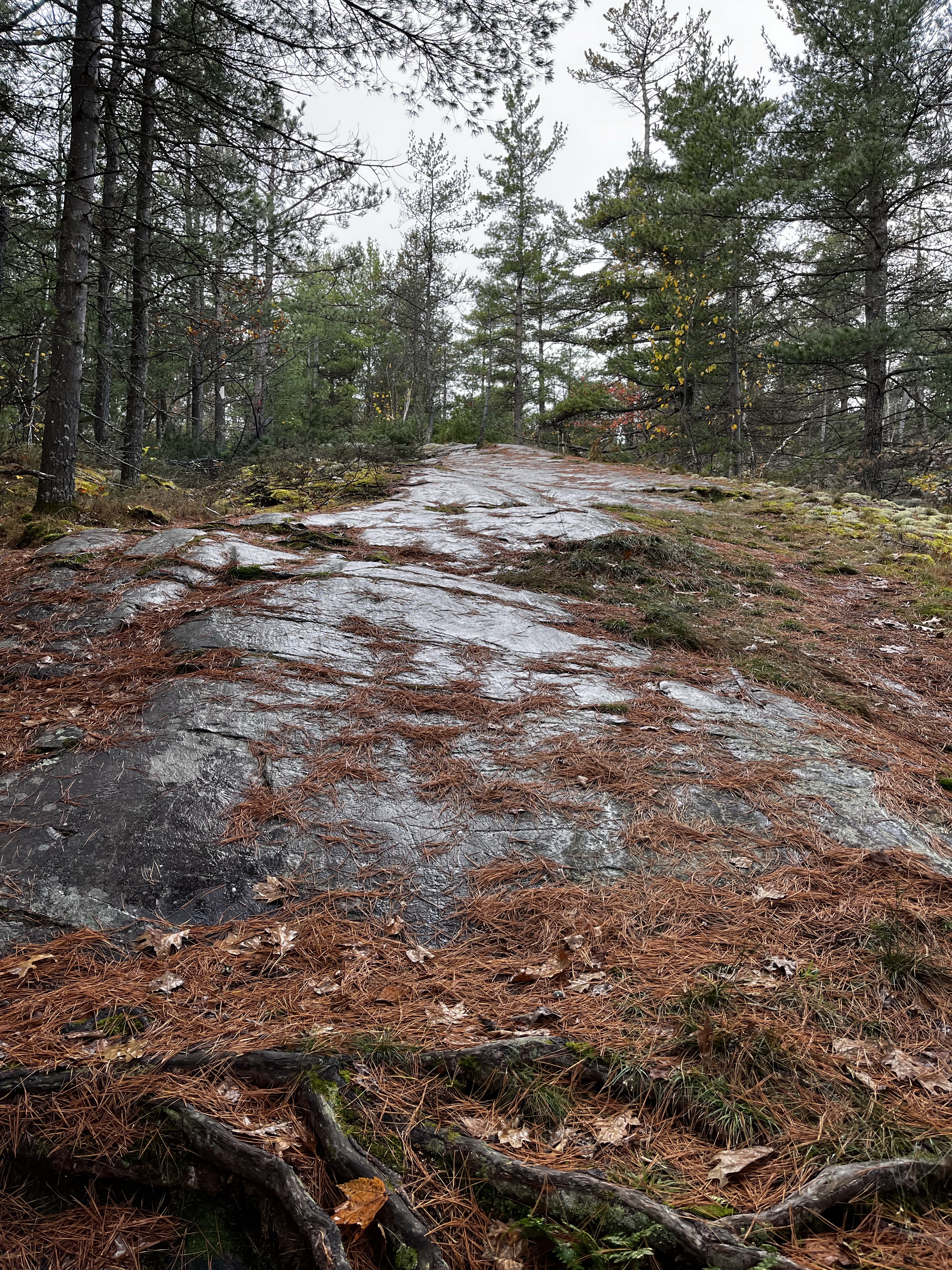 This trail is only 2km. It takes about an hour and has lots of beauty to offer. At the highest point of the trail, you are rewarded with two lookouts! On the north side that shows the LaCloche mountain range and forests, which is breathtaking. The lookout on the south side offers views of islands and Georgian Bay. You are surrounded by amazing scenery here, take it in. The trail is quite easy but has some elevation gain in places.