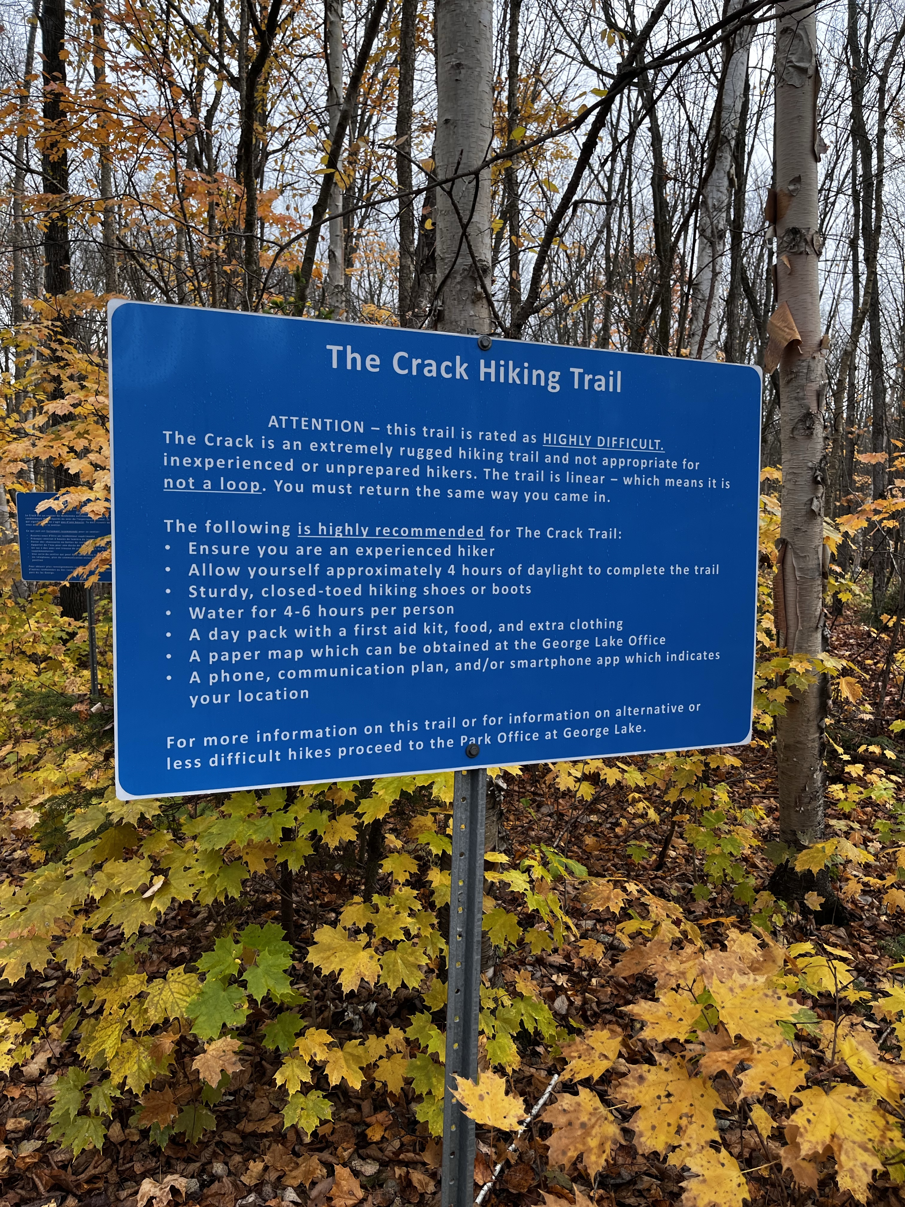 The Crack is a very well-known trek in Ontario (and for good reason). Neither of us had been to it before, and we could not have been more prepared to have our breath taken away. After a visit to the welcome centre, we ventured to the Crack’s trailhead first thing in the morning.