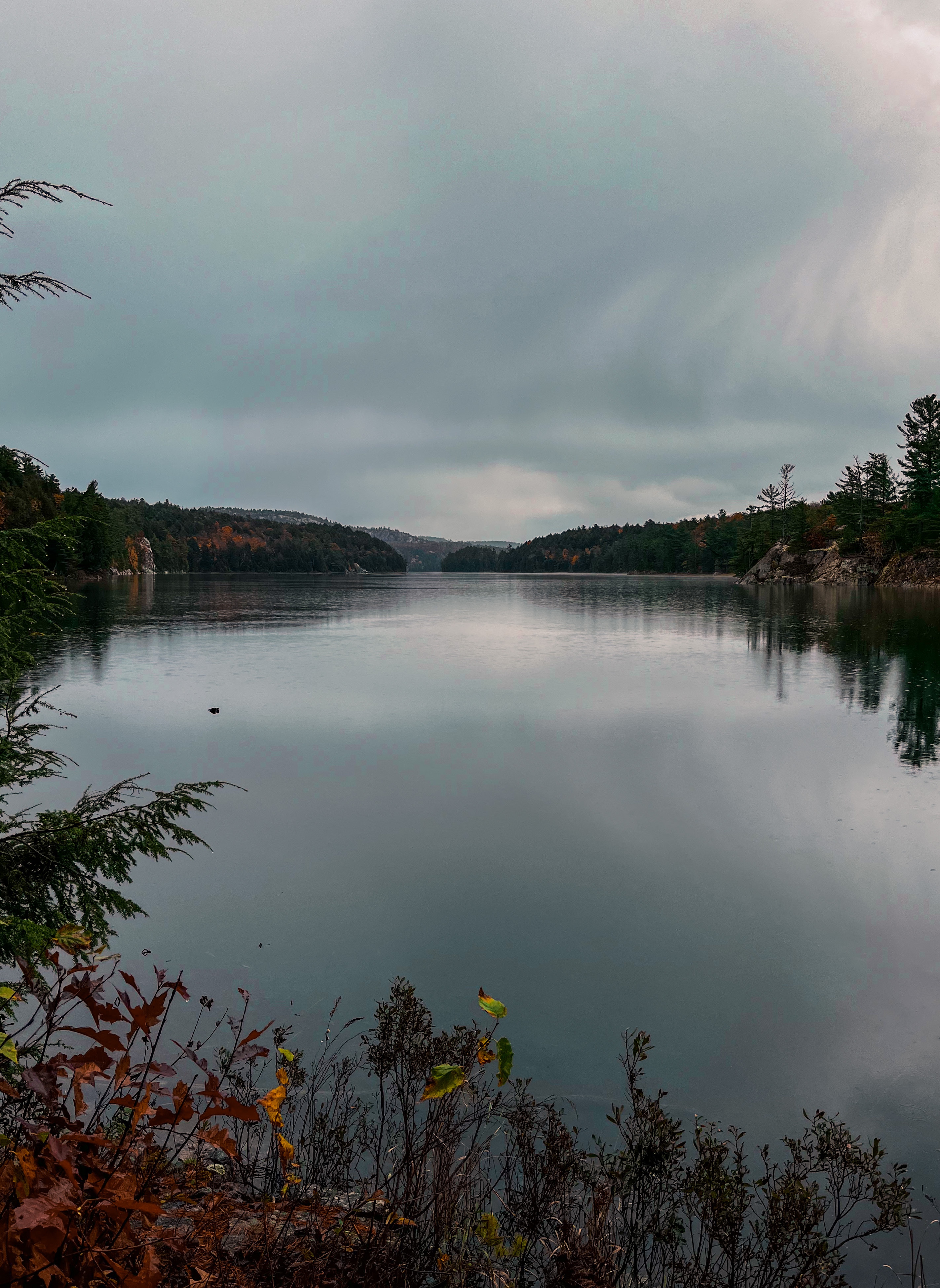 There were numerous areas where we stopped to appreciate the trail and lookouts. First, we admired the beginning of the trail. Something about the trees encircling the path was just so beautiful, not to mention the colour of the leaves everywhere. Ontario Parks leaf radar had recorded 60% leaf fall but there were still many leaves to enjoy, plus the leaves on the ground added so much colour.