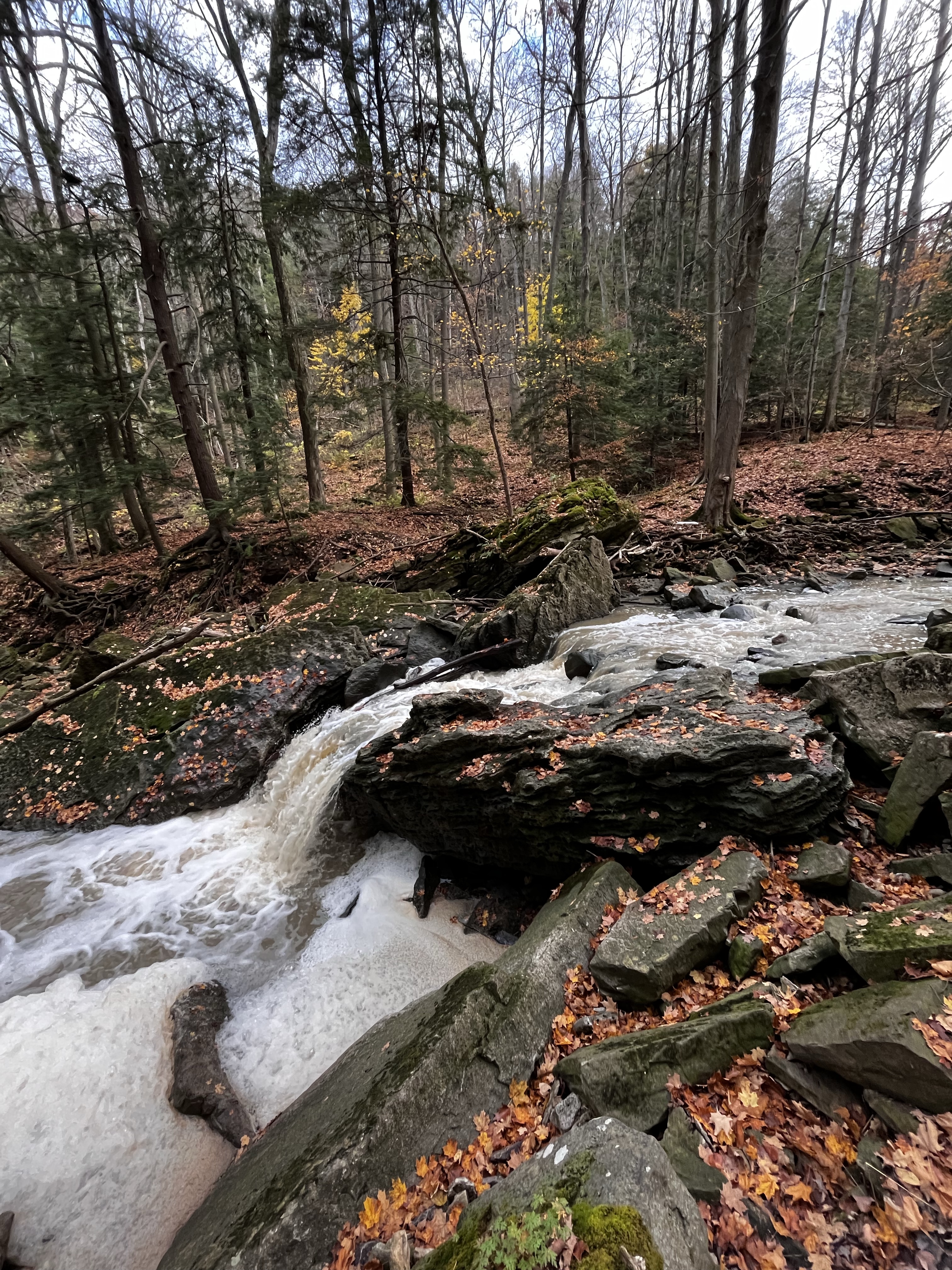 I’ll note right away that this place has a steep cliff with no fencing, so be careful. But there is a trail that takes you into the forest, or you can take the trail down to the water. There is a swimming hole, 2 smaller waterfalls, and a substantial waterfall coming from Morningstar Mill.