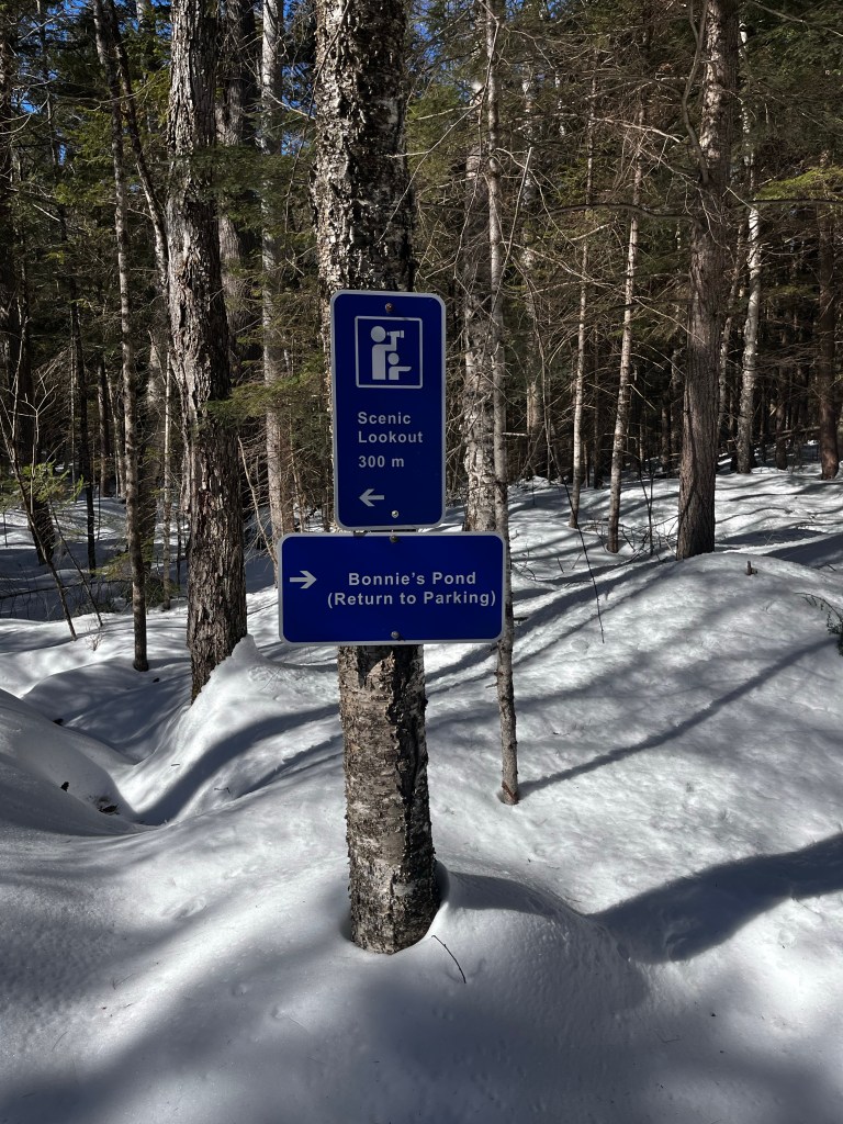 I snowshoed the 3km Bonnie’s Pond Trail. It offers views of a breathtaking lookout and a large beaver pond. This trail took me 1hour to complete (including lots of photo taking).