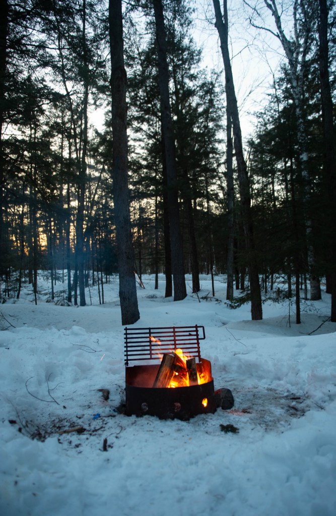 After snowshoeing, I headed to my campsite to get my Jeep ready to sleep in (which I like to do while the sun is still up) and started building a warm campfire. Of course that means s’mores!