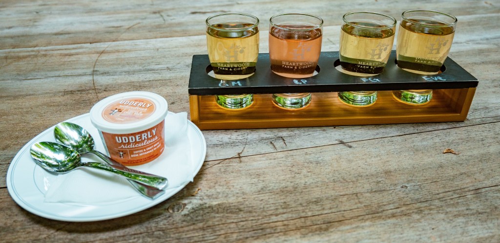 This was my first time ever at a Cidery! There are farm animals you can see when you park, and you follow a path to the Cidery where you can order a flight, 9oz glasses, or goat milk ice cream (YUM, I might like this more than regular ice cream now).