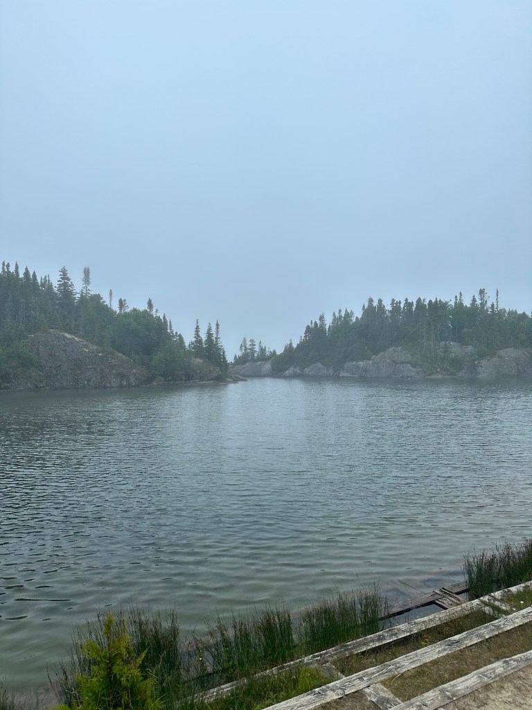 Mark my words – I WILL BE BACK SOON TO EXPLORE THE SUSPENSION BRIDGE! That is at the top of my Ontario bucket list right now. We arrived at this park for 7am and it was VERY foggy and when we went to get a pass we were told most hikes were unsafe due to weather so we just explored around the shore which was still breathtaking.