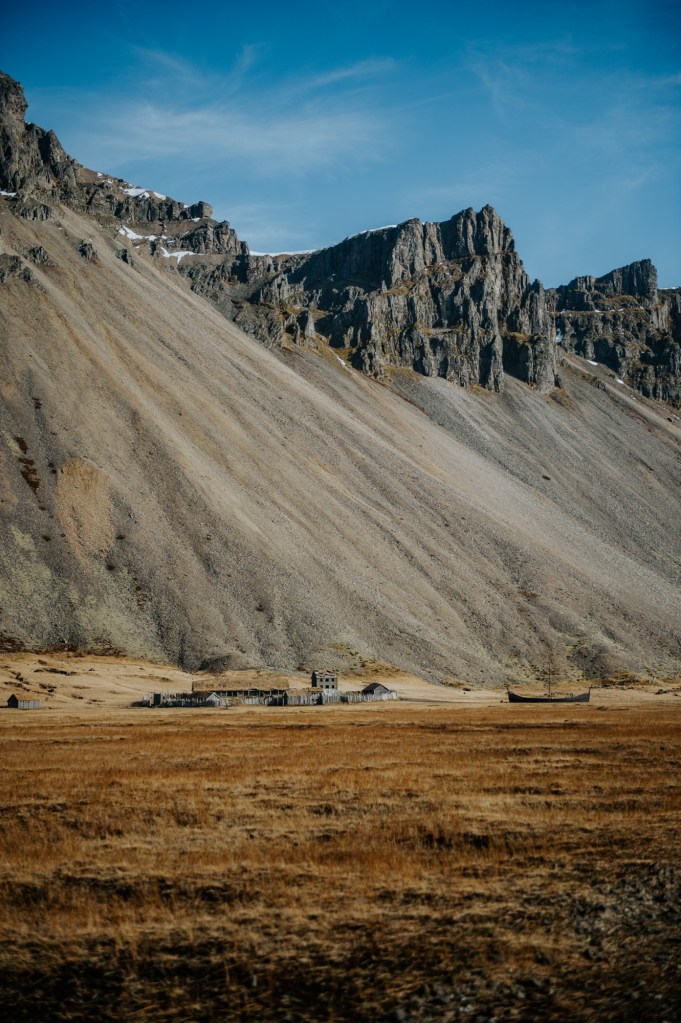 On the road again, we made it to a stop we were all so stoked for! Stokksnes. Or Stoked-snes, as we called it. Now I personally was excited to see the famous reflection here but it simply did not exist while we were there because of lack of rain (I think). But…still 1000000% worth it, and one of all of our favourite destinations on the whole trip. Here you will find a Viking village that I think is in the show The Witcher, and then there is beautiful scenery and a little trail with a ladder over a fence that takes you to some sea cliffs where we saw WHALES!!! And Seals!!!! All wild, free and living their best lives. We watched them for hours. This was a great, long day and caught up on some much needed sleep.