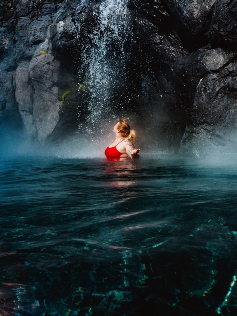 After visiting the puffins, we headed back to some waterfalls we visited on the way through the first time and then grabbed some coffee before heading to a hot spring. Hrunalaug was not on our list to visit originally, but we all really wanted to shower and when you visit hot springs its important to shower before and after using them. This hot spring is owned by farmers and they let the public use it for a fee. It felt like we were in the Shire. There are 3 different pools here and each are different temperatures, from warm to hot tub temperature. It was a great experience but heads up, the water is a little dirty – to be expected in a natural hot spring.