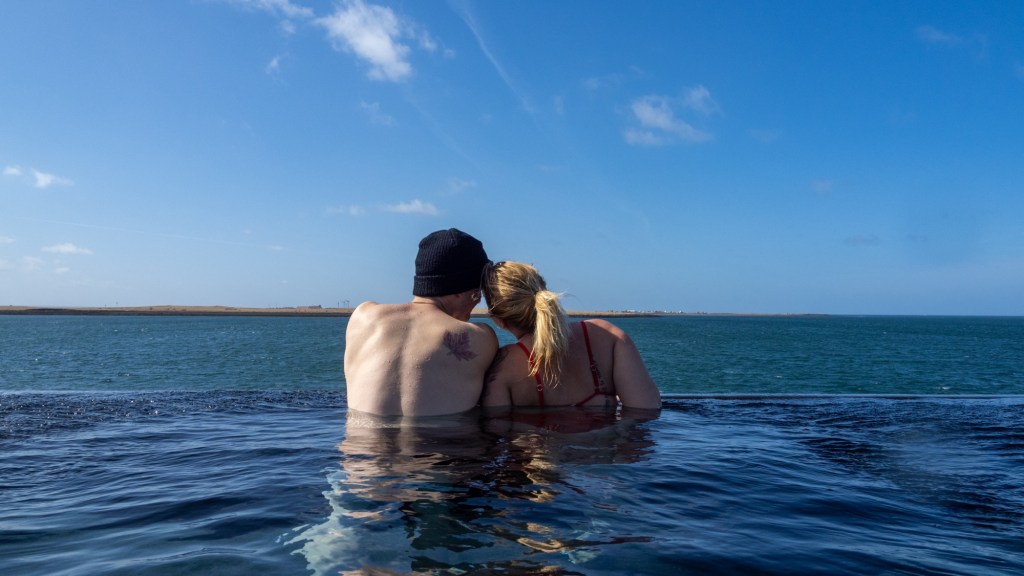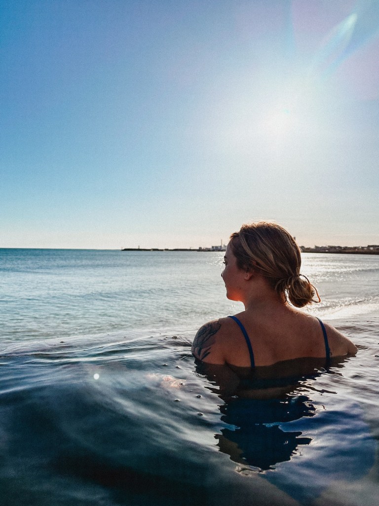 The first stop of our trip was the famous Sky Lagoon where we booked the “Pure Lite” package. Sky Lagoon opened in 2021 and it is a wellness center that features a cafe, in-pool bar, 230-foot infinity pool, waterfall to swim under, and if you book the “Ritual” package you can experience their 7-step wellness package. This spa was an excellent choice for us after a long travel night of no sleep, and we felt so clean and refreshed after. This lagoon is man-made, but it is a great experience nonetheless and was such a different experience than the natural hot springs we visited on this trip. I definitely would go here again! When we first arrived here, there was a group of people who were walking in before us and we overheard one of them say “this place looks like if the Teletubbies had an evil lair” and that was the best reference I’ve ever heard, plus pretty accurate.