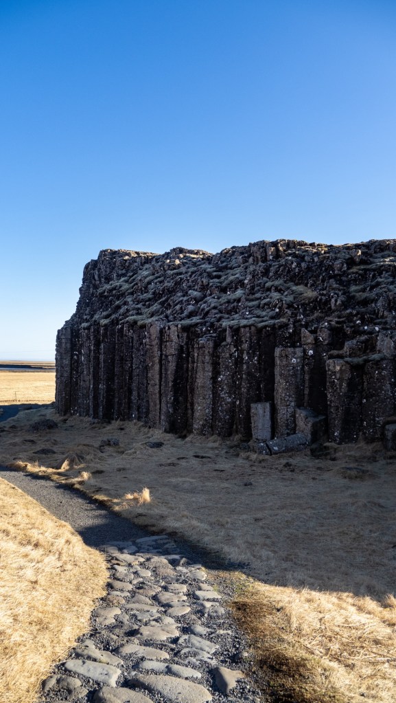 With full bellies once again, we headed over to a short hike at Dverghamrar. To be honest we wanted to visit here merely because the name translates to “The Dwarf Cliffs” and we are all big Lord of the Rings fans. Dverghamrar Cliffs is a natural monument of six-sided basalt columns, formed by cooling lava and wave erosion. It feels really smooth to the touch.