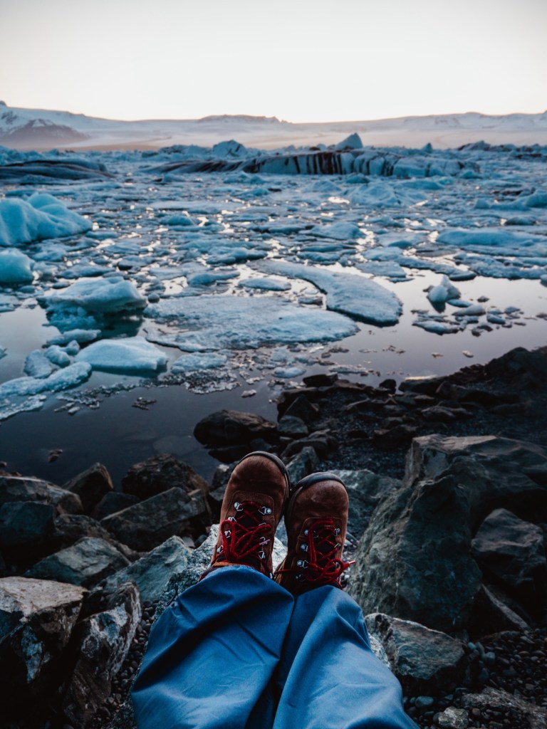 JΓΆkulsΓ‘rlΓ³n Glacier and Diamond Beach. We watched the sunset here, went to our camp and when we woke back we came straight back to this destination. The glacier and beach are on opposite sides of the same road, so we just walked from one parking lot to the other since they’re so close. Diamond beach looked extremely different from the night before, I’m glad we saw it more than once so we could witness the huge difference. These stops are a must, in my opinion.