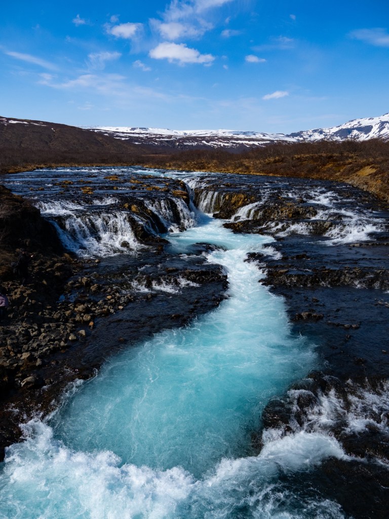 As we were headed to our next destination, we saw a sign with a picture of a pretty waterfall so we pulled in and we were so glad we did! The drive to the parking lot is down a very rock road, but it leads you to Iceland’ bluest waterfall Bruarfoss Waterfall. We all thought the photo we saw of this waterfall was edited, but it in fact is the true colour of the water here. Amazing.