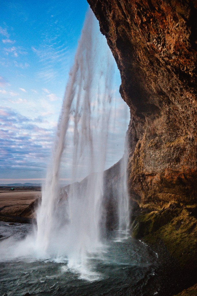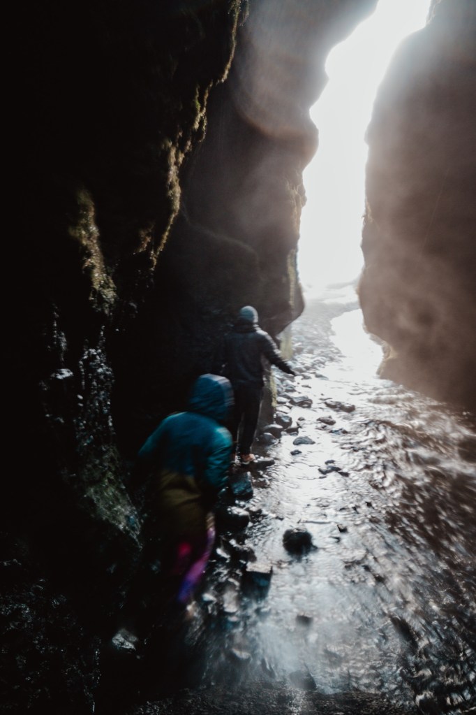 When we woke up, the first stop of the day was a waterfall lover’s haven! There is a paid parking lot and immediately you will see the first waterfall, Seljalandsfoss. We actually ended up coming here twice on our trip because we loved it so much and the first time we went, the walk behind this first waterfall was closed but the second time it was open!! Once you’re done visiting that waterfall, you’ll notice a trail that takes you to some other waterfalls that are pretty but not as extravagant. Keep following that trail down until you see a slot in the rocks with a river running inside of it (hope you’re ready to get wet!). This waterfall you’re about to see in here, Gljufrafoss, is possibly my favourite waterfall of the entire trip. It is so beautiful!