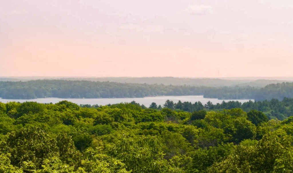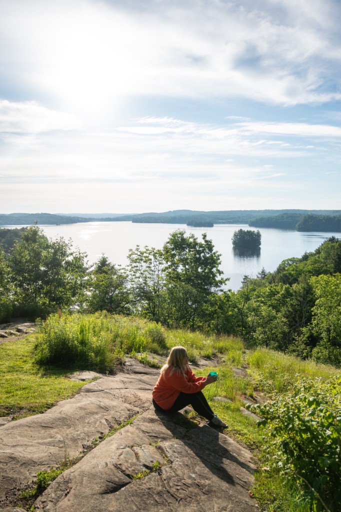 This is just under 1KM so I’m considering it a roadside stop here. Once you reach the lookout point you’ll be greeted with two Muskoka chairs and beautiful views of treetops and lakes in the distance. I personally love this stop in the Fall the most. Wear bug spray in Spring/Summer!