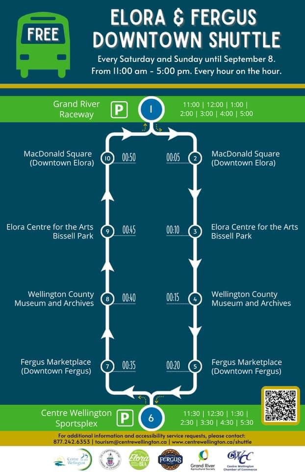 Worried about finding parking? On weekends you can park at the Wellington County Museum and take the free shuttle between Elora and Fergus!