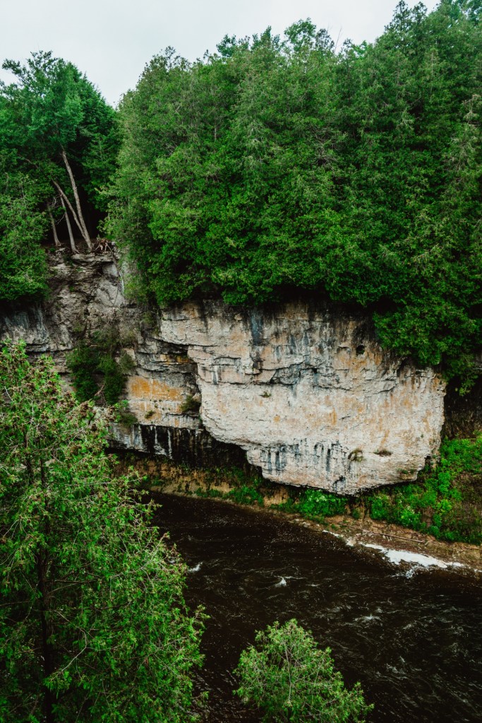 Located within 30 minutes of Elora is Rockwood Conservation area, one of my favourite spots to visit! There are multiple caves here, a man made waterfall, canoe rentals, a beautiful look out, a beach and two hiking trails. It reminds me a bit of Muskoka! I highly recommend every single activity here – hiking, paddling, swimming, camping!