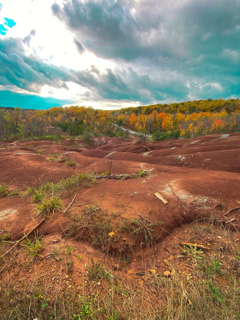 Another location that is beautiful year round, but the colours of Fall bring out the badlands which is why this one is a must-see on my list. You can either reserve your trip here by paying, or you can hike in for free along the Bruce Trail like I did. Be sure to not actually step on the badlands themself, stay behind the fence to preserve this unique area.