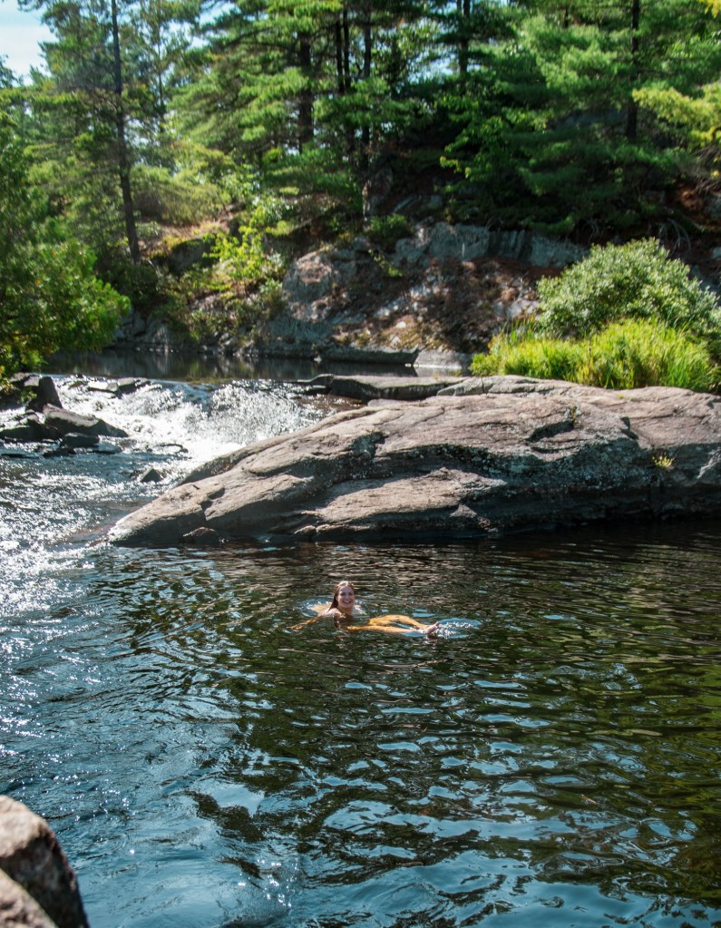 One of my favourite places to visit in Ontario is the High Falls Cheater Trail. A 4km (each way) trail that leads to a natural water park. There’s a waterfall you can slide down and small ledges to cliff jump from. It’s also a great place to swim! Be sure to arrive early as the parking lot is small and fills up fast.