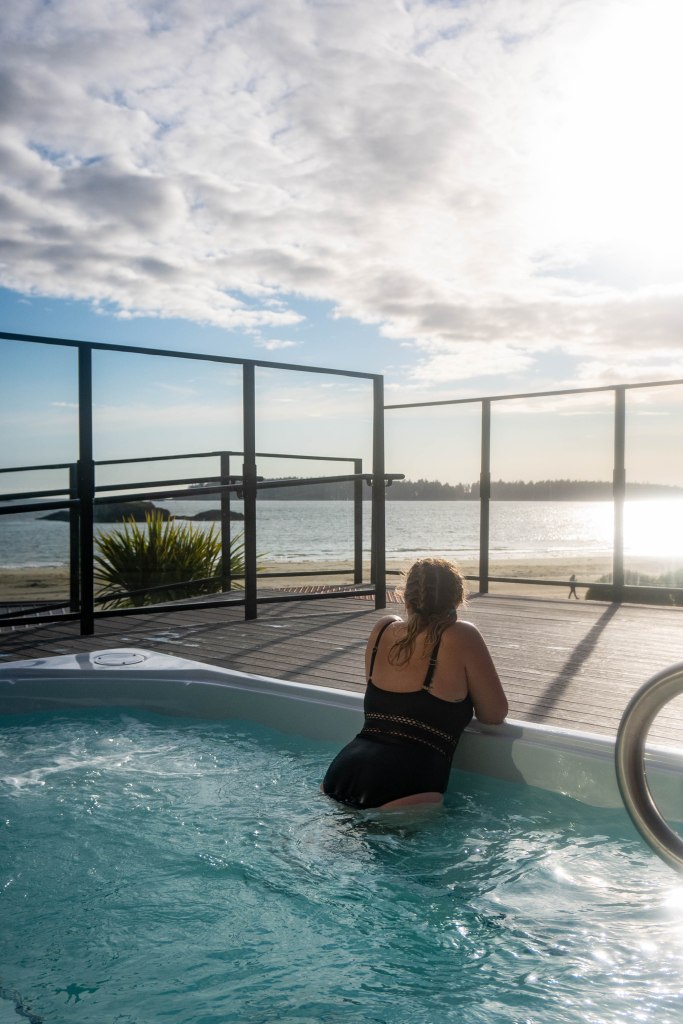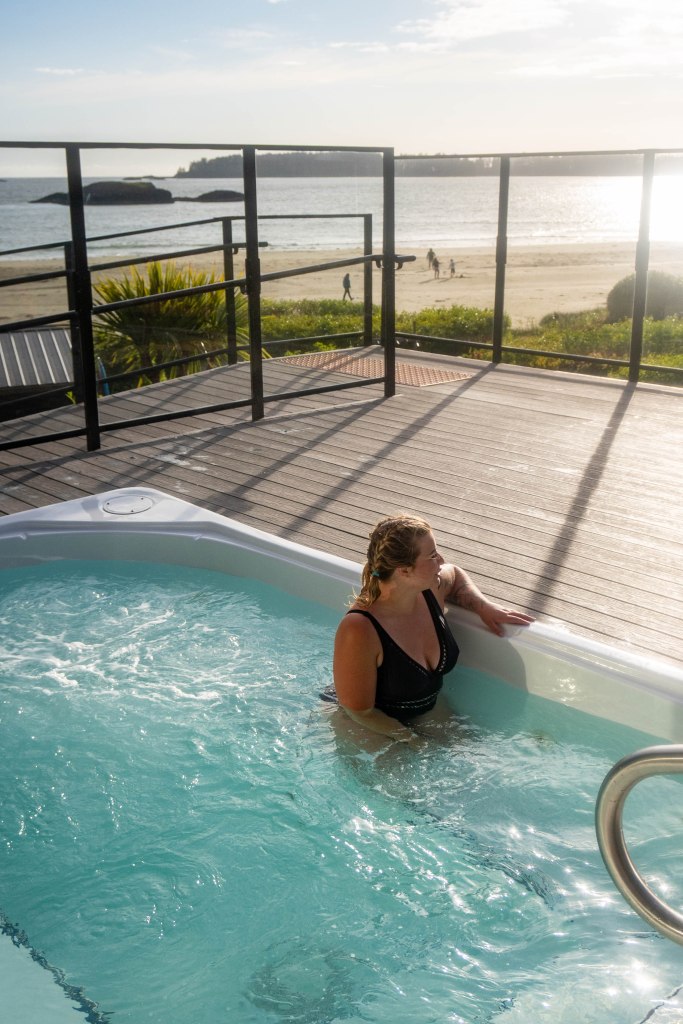 - Chilling at the resort, cold plunging in the ocean, then warming up in the hot tub.