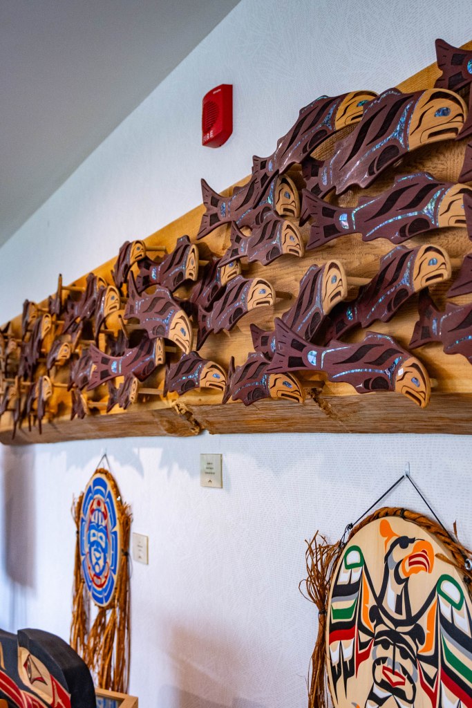Before leaving Port Hardy, we stopped at the art gallery inside Kwa’lilas Hotel — full of incredible Indigenous artwork.