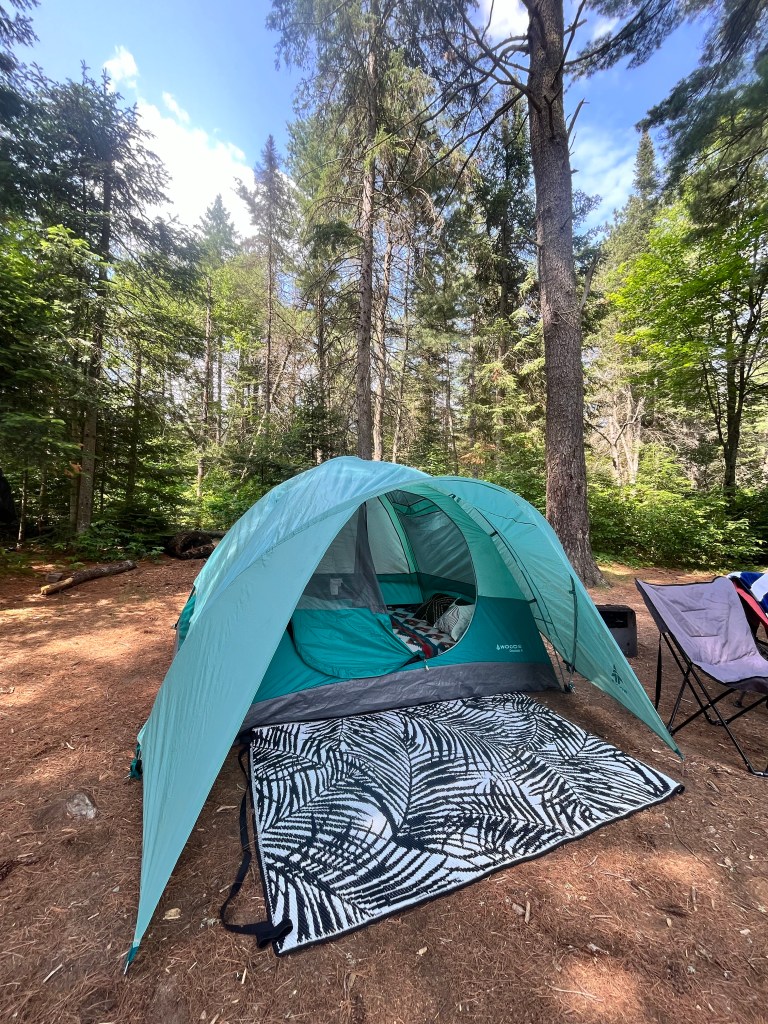 Tent- I have been using the Woods Creekside Tent since 2021 and it has held up perfectly for me! It is easy to set up, a great size and can withstand rain. When I go camping with my friends I usually bring this Mountain Warehouse Pop Up Tent instead to cut the set up time though.